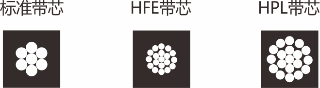 - INOX不銹鋼帶芯:適用于侵蝕性環境。它們的抗張強度低于標準帶芯。